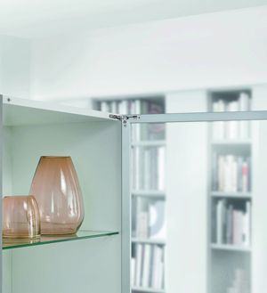 革新的で,また画期的な丁番です。上下の木口部とトビラの中に挿入され,そのコンパクトさにもかかわらず,ソフトクローズ機構を組み込んでいます。